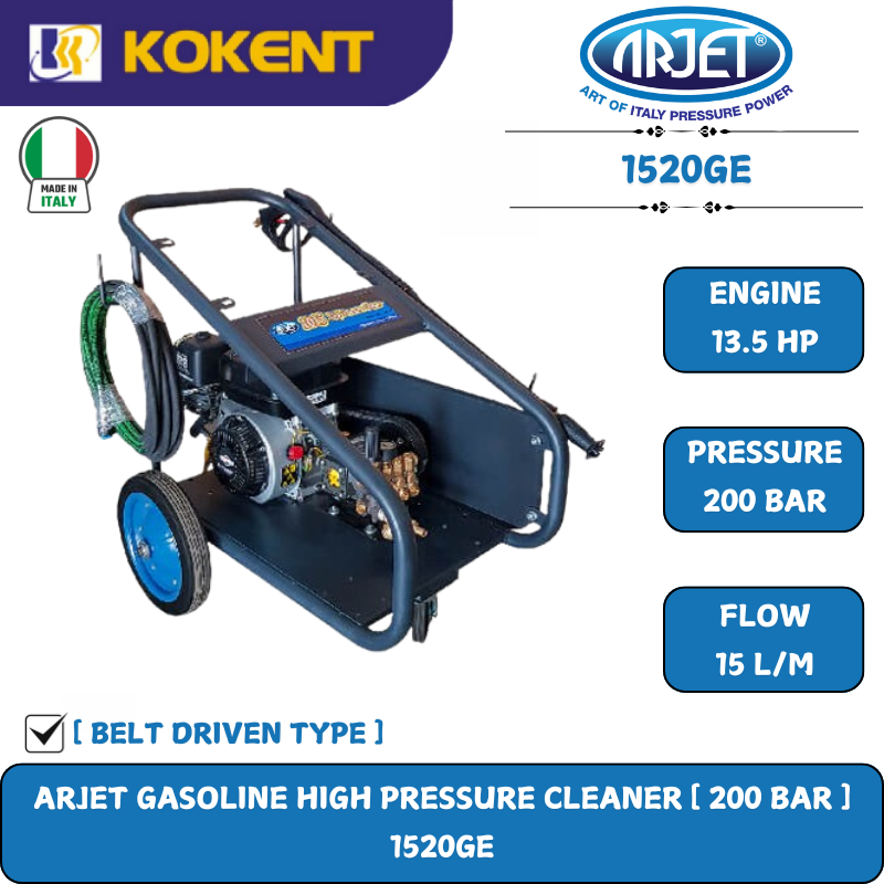 ARJET 1520GE Gasoline Engine Driven (Belt Driven Type) Italy High Pressure Cleaner with Standard Accessories