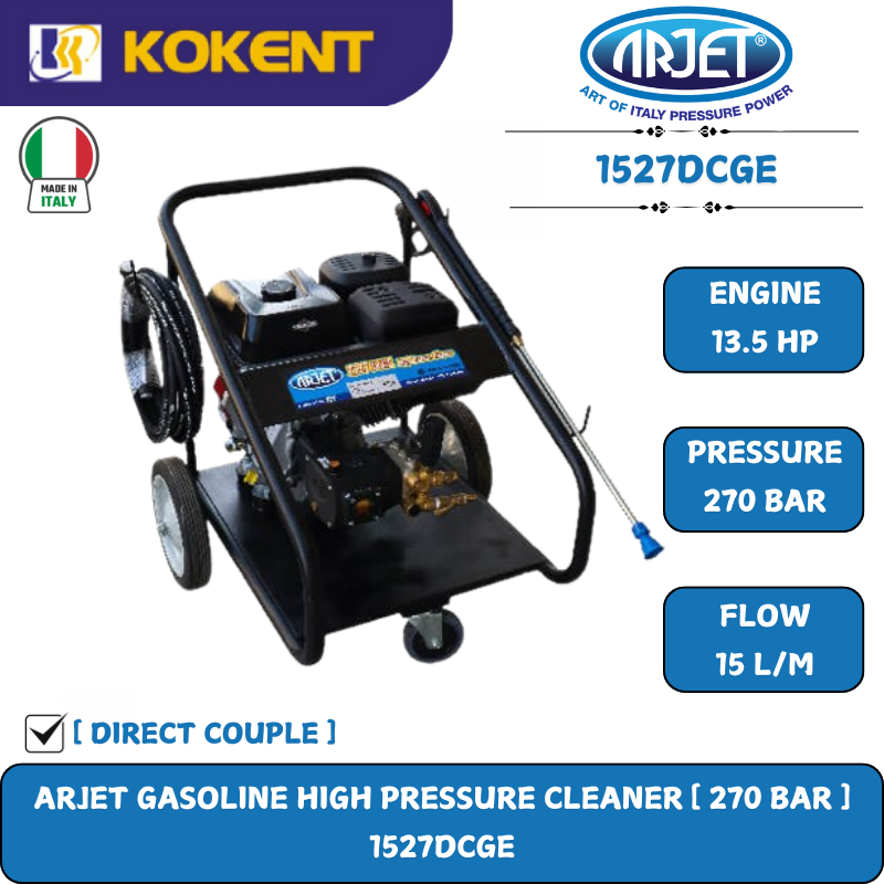 ARJET 1527DCGE Italy Gasoline Engine Driven (Direct Couple) High Pressure Cleaner with Standard Accessories