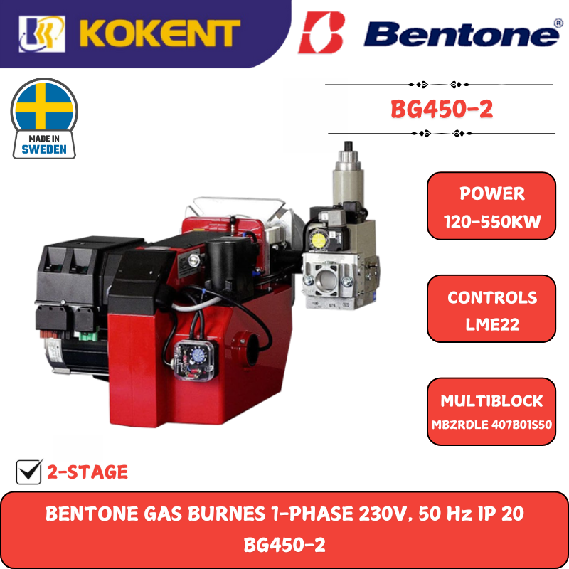 Gas Burner Two stage BENTONE BG450-2 is a gas burner designed for use in gas combustion systems. It features a two-stage combustion capability, allowing efficient control of energy consumption. The burner is versatile and suitable for various gas types, providing flexibility for different applications. The BENTONE BG450-2 is engineered for high performance, making it an ideal choice for industrial and construction settings where precise and efficient combustion control is essential.