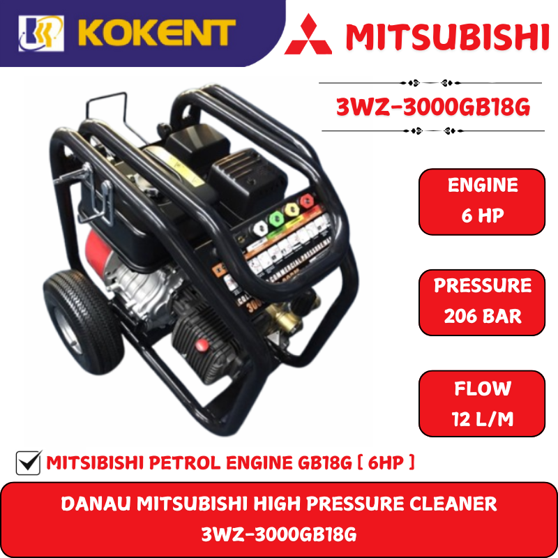 DANAU MITSUBISHI HIGH PRESSURE CLEANER (6.HP.206BAR.3000PSI12L/MIN) 3WZ-3000GB18G