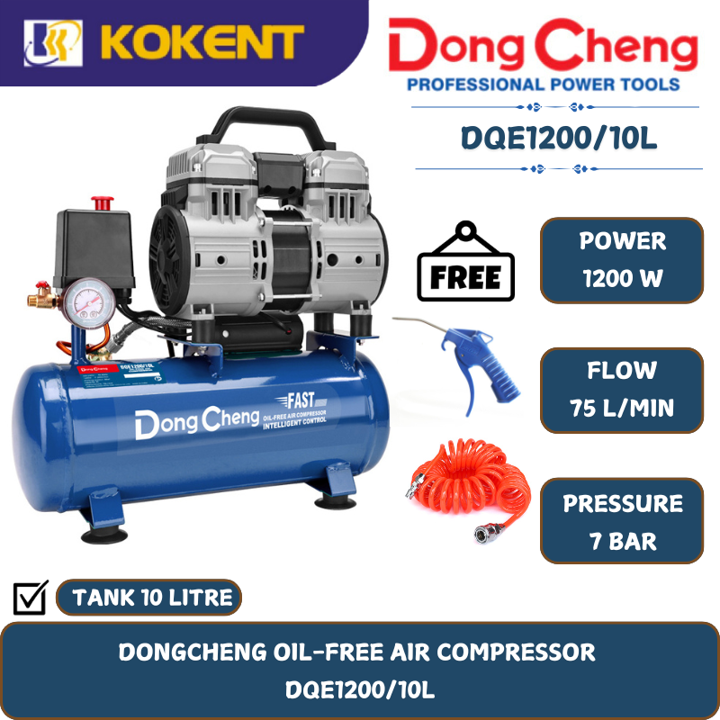DONGCHENG OIL-FREE AIR COMPRESSOR [ 1200W.10L/TANK.13.2KG ] DQE1200/10L
