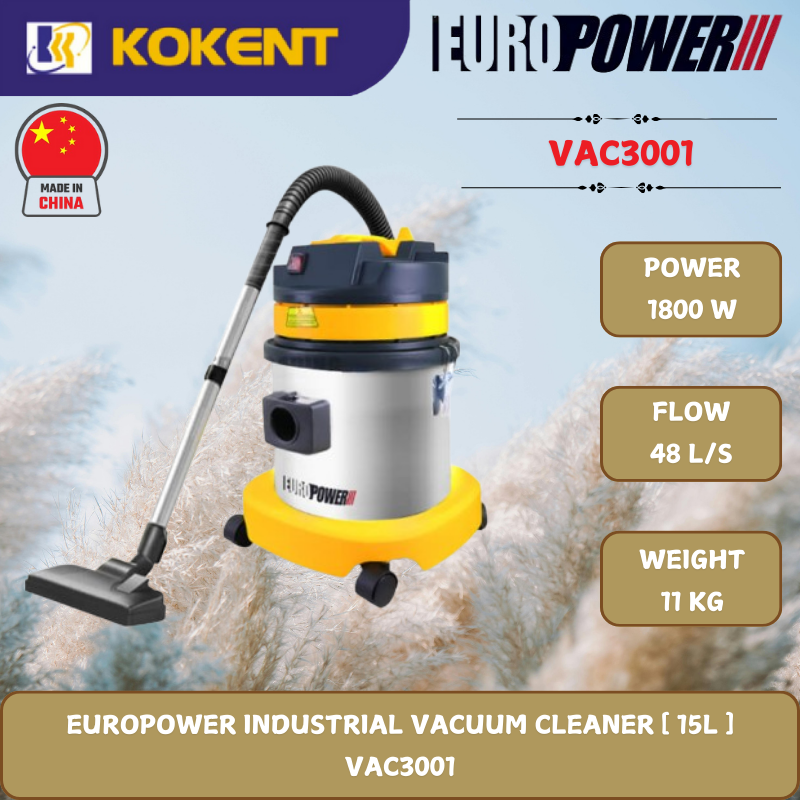 EUROPOWER INDUSTRIAL VACUUM CLEANER [ 15L.1800W.11KG ] VAC3001