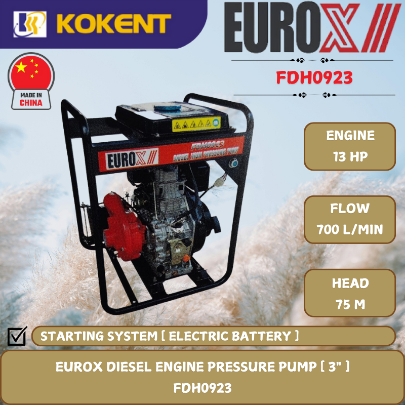 EUROX DIESEL ENGINE PRESSURE PUMP [ 3".13HP.75M.700L/MIN ] FDH0923