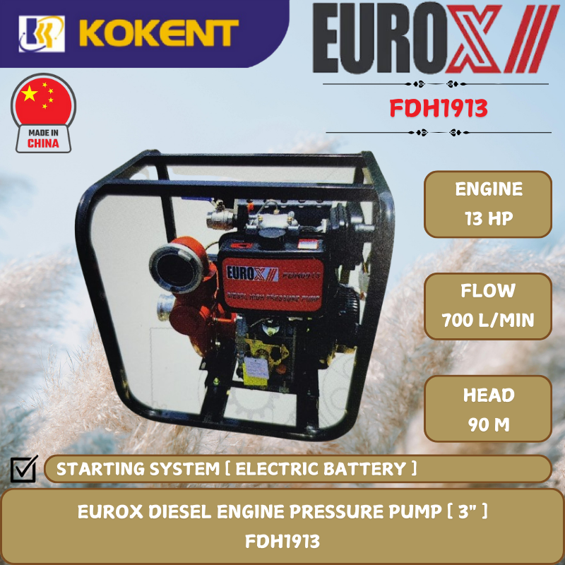 EUROX DIESEL ENGINE PRESSURE PUMP [ 3".13HP.90M.700L/MIN ] FDH1913