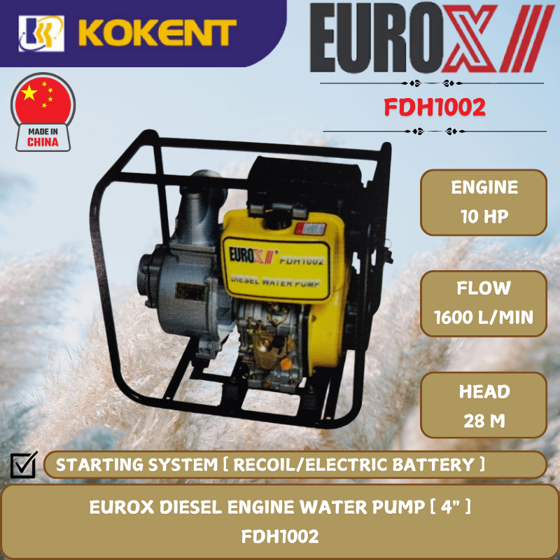 EUROX DIESEL ENGINE WATER PUMP [ 4".10HP.28M.1600L/MIN ] FDH1002