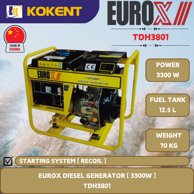 EUROX DIESEL GENERATOR [ 3300W.12.5L/TANK.70KG ] TDH3801