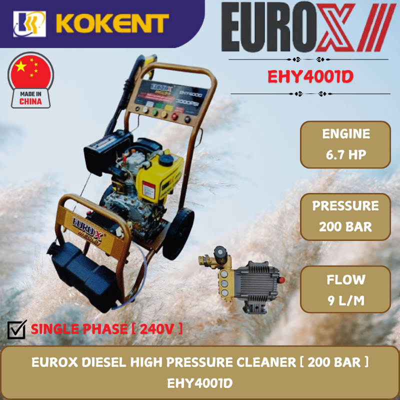 EUROX DIESEL HIGH PRESSURE CLEANER [ 200 BAR.6.7HP.9.46L/MIN ] EHY4001D