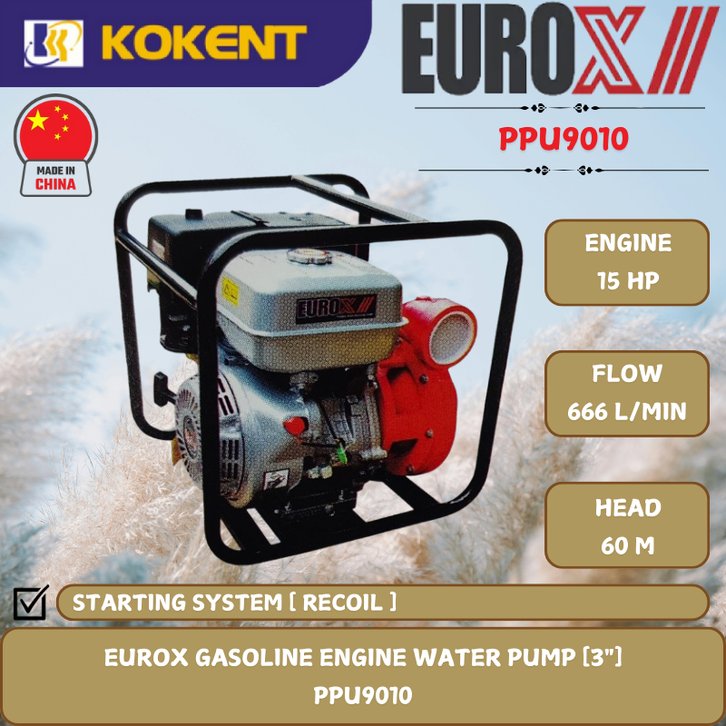 EUROX GASOLINE ENGINE WATER PUMP [3".15HP.60M.666L/MIN] PPU9010