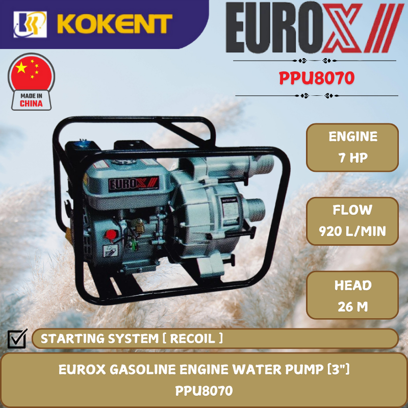 EUROX GASOLINE ENGINE WATER PUMP [3".7HP.26M.920L/MIN] PPU8070