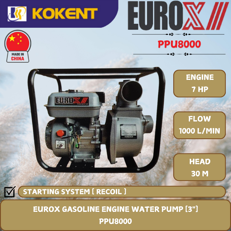 EUROX GASOLINE ENGINE WATER PUMP [3".7HP.30M.1000L/MIN] PPU8000