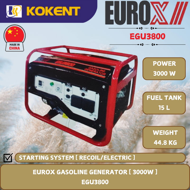 EUROX GASOLINE GENERATOR [ 3000W.15L/TANK.44.8KG ] EGU3800