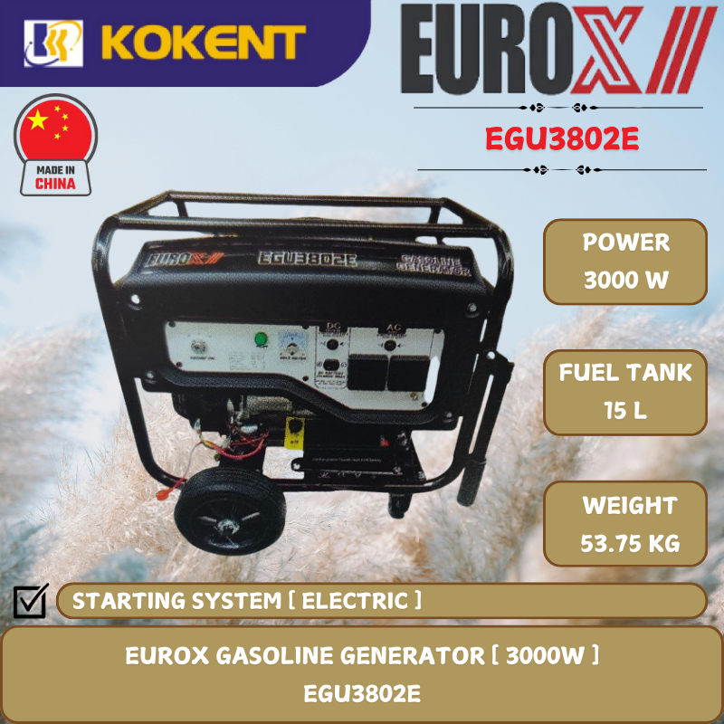 EUROX GASOLINE GENERATOR [ 3000W.15L/TANK.53KG ] EGU3802E