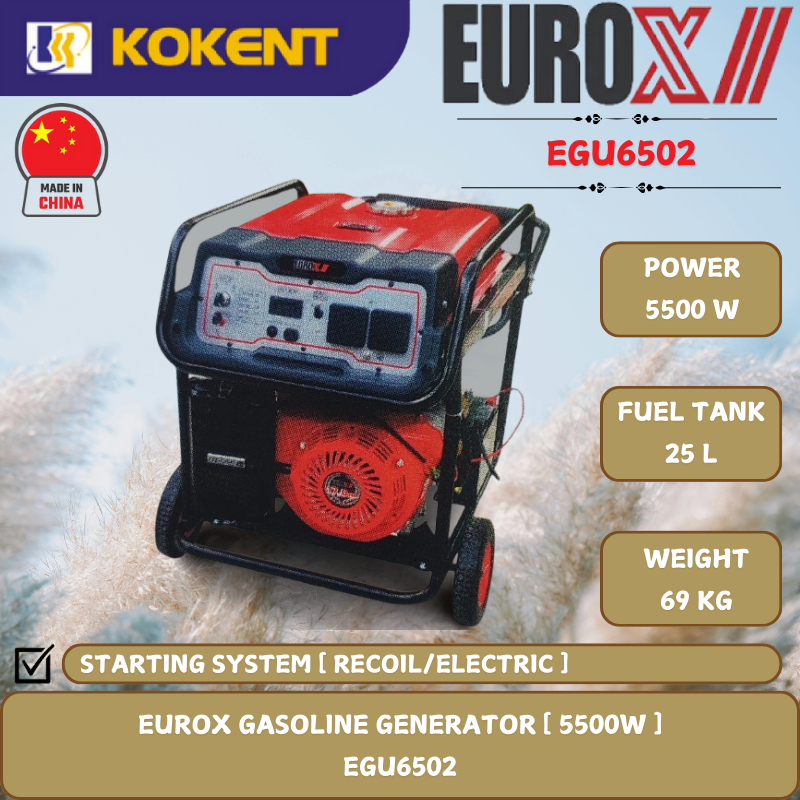 EUROX GASOLINE GENERATOR [ 5500W.25L/TANK.69KG ] EGU6502