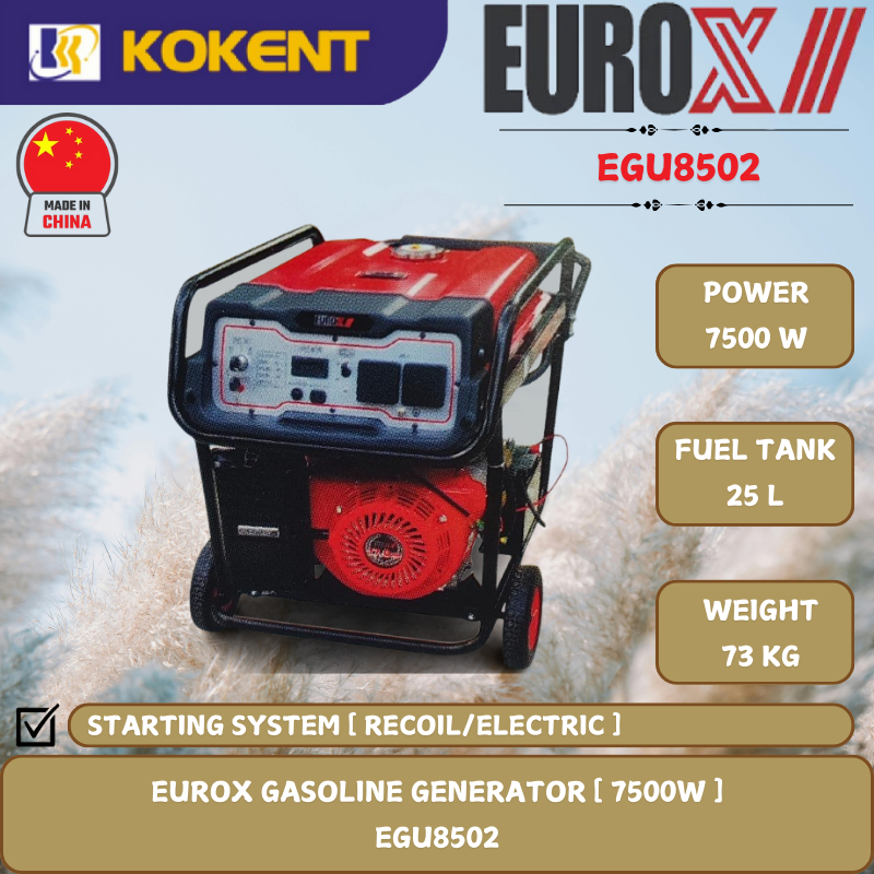 EUROX GASOLINE GENERATOR [ 7500W.25L/TANK.73KG ] EGU8502