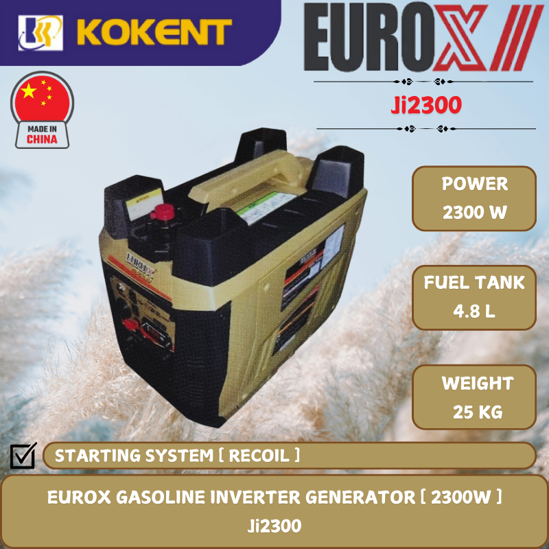 EUROX GASOLINE INVERTER GENERATOR [ 2300W.4.8L/TANK.25KG ] Ji2300