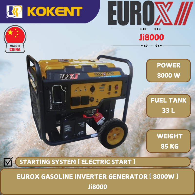 EUROX GASOLINE INVERTER GENERATOR [ 8000W.33L/TANK.85KG ] Ji8000