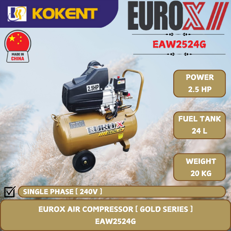 EUROX GOLD SERIES AIR COMPRESSOR [ 2.5HP.24L/TANK.20KG ] EAW2524G