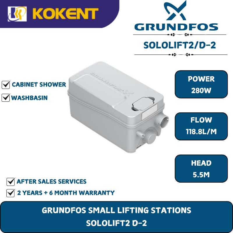 Grundfos SOLOLIFT2 are small, compact, ready-to-install automatic lifting stations with integrated powerful cutter systems. Suitable for pumping wastewater with feces from private dwellings. The unit is designed according to EN 12050-3.