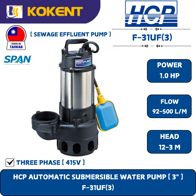 HCP F-31UF(3) (made in Taiwan) is a submersible pump for sewage water.