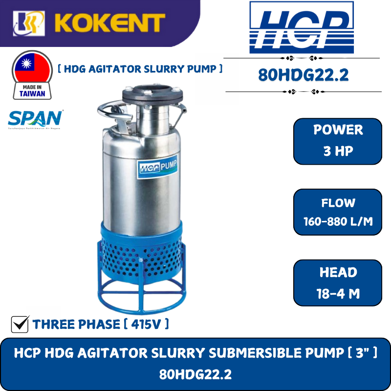 HCP HDG AGITATOR SLURRY SUBMERSIBLE PUMP [ 3".3HP.415V.160-880L/M.18-4M ] 80HDG22.2