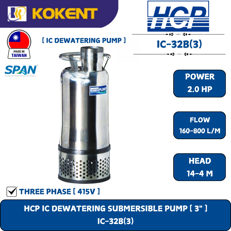 HCP IC DEWATERING SUBMERSIBLE PUMP [ 3".2HP.415V.160-800L/M.14-4M ] IC-32B(3)