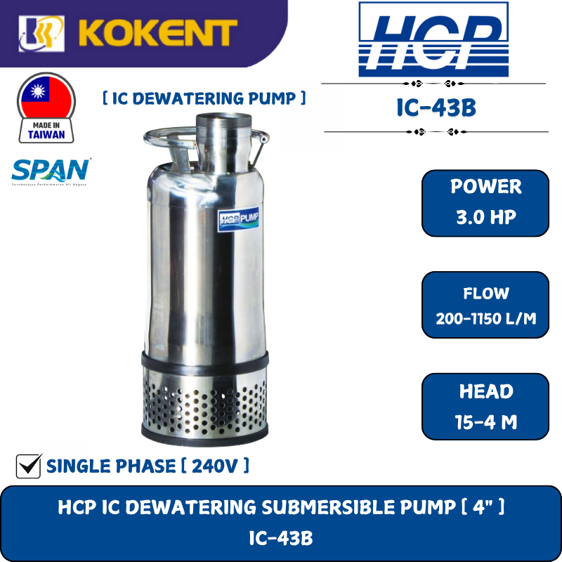 HCP IC-43B (made in Taiwan) is submersible dewatering pump for agriculture water supply.