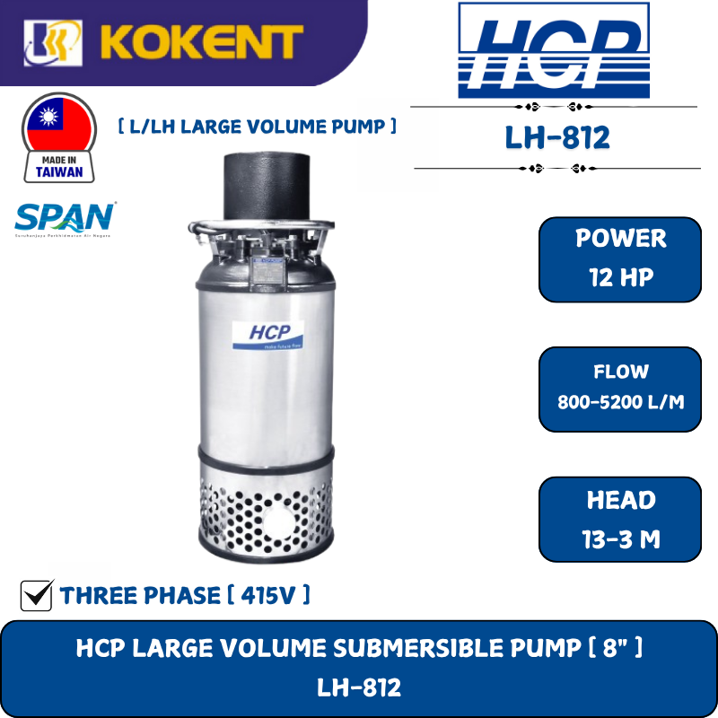 HCP LH-812 (made in Taiwan) is a large volume submersible dewatering pump.