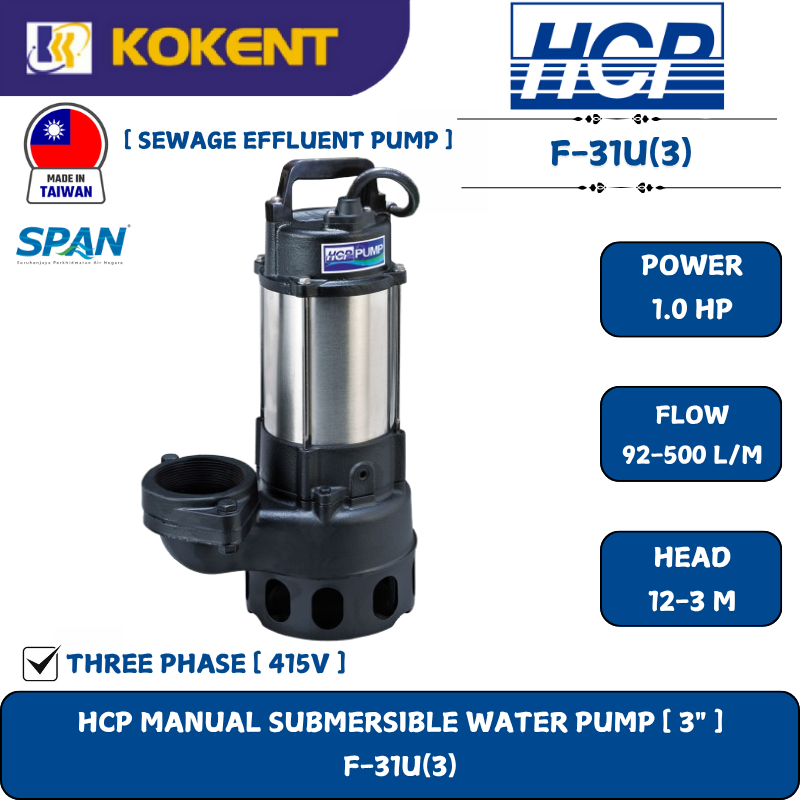 HCP F-31U(3) (made in Taiwan) is a submersible pump for sewage water.