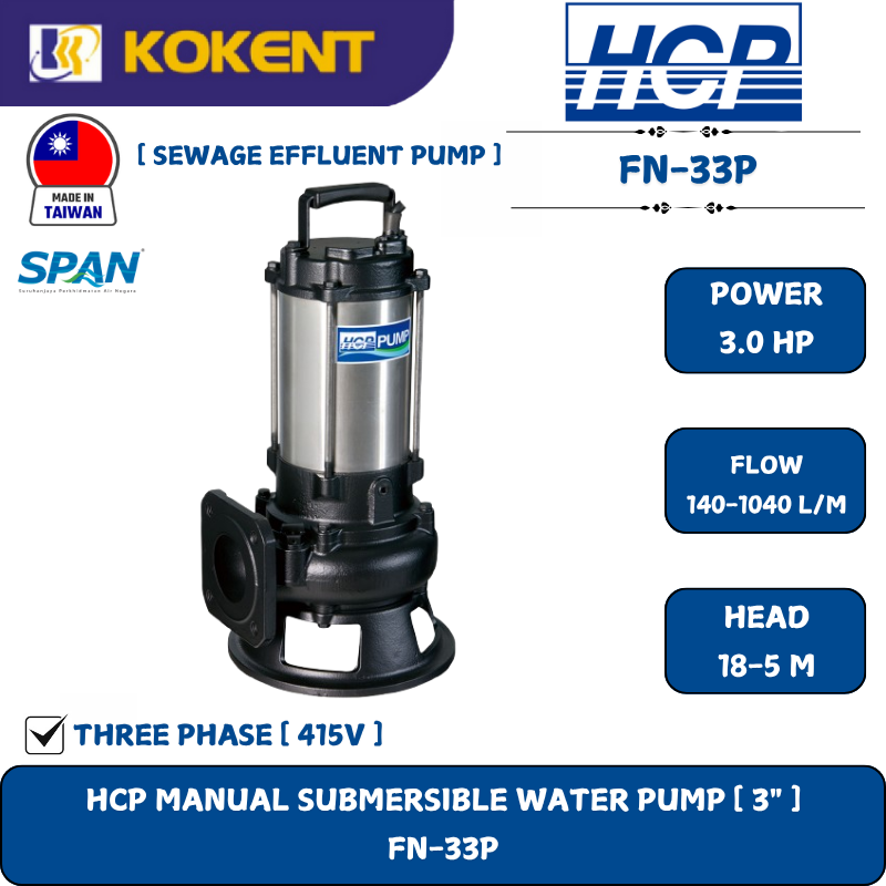 HCP FN-33P (made in Taiwan) is a submersible pump for sewage water.