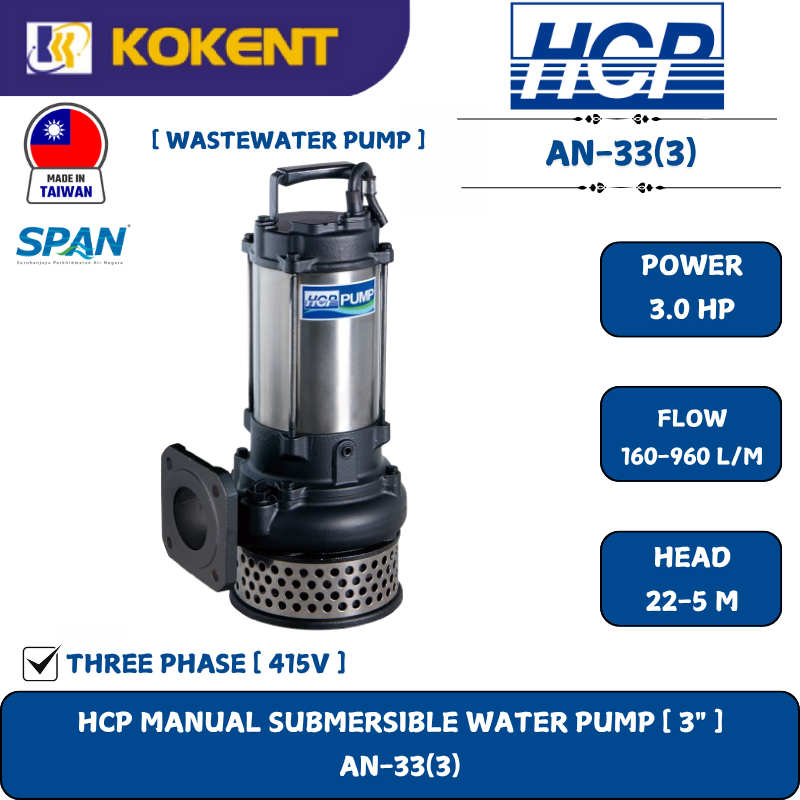 HCP AN-33(3) (made in Taiwan) is a submersible pump for general waste water.