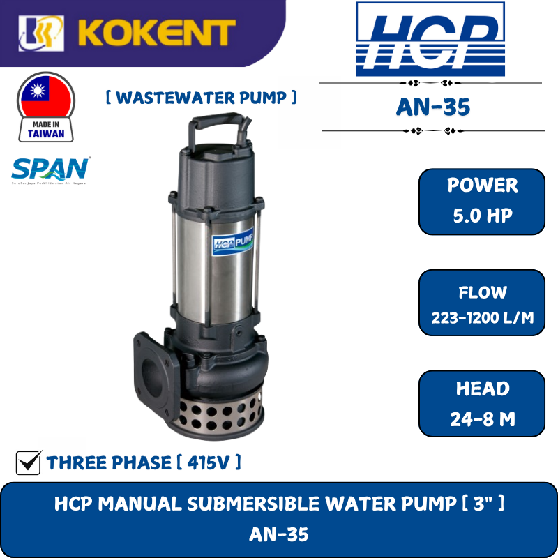 HCP AN-35(3) (made in Taiwan) is a submersible pump for general waste water.