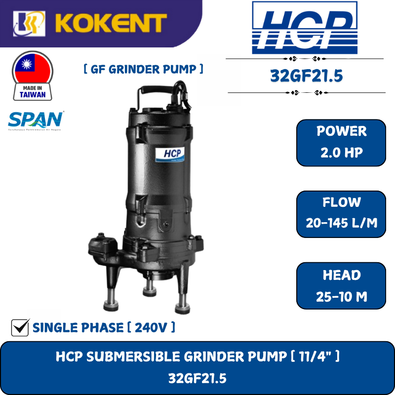 HCP 32GF21.5 (made in Taiwan) is a submersible pump for sewage water.