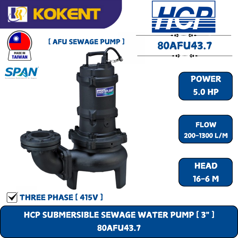 HCP 80AFU43.7 (made in Taiwan) is a submersible pump for sewage water.