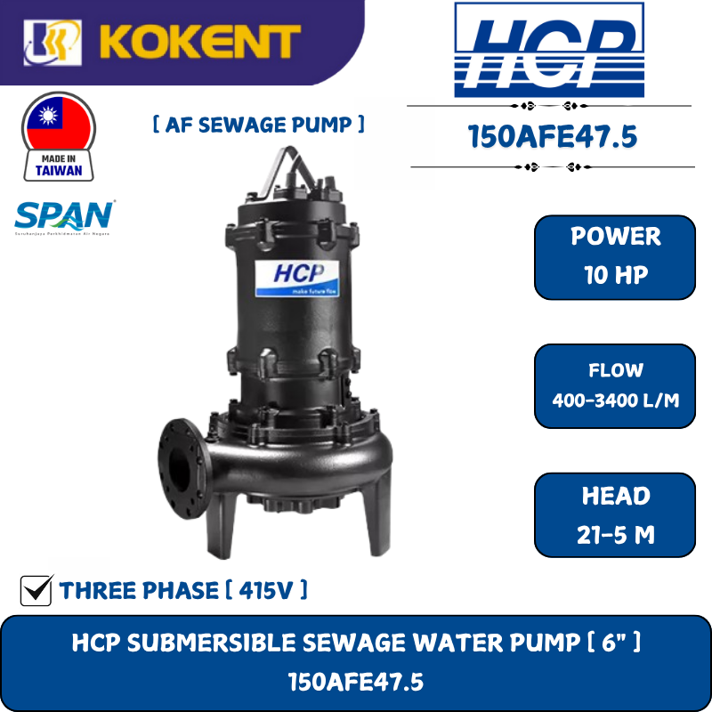 HCP 150AFE47.5 (made in Taiwan) is a submersible pump for sewage water.