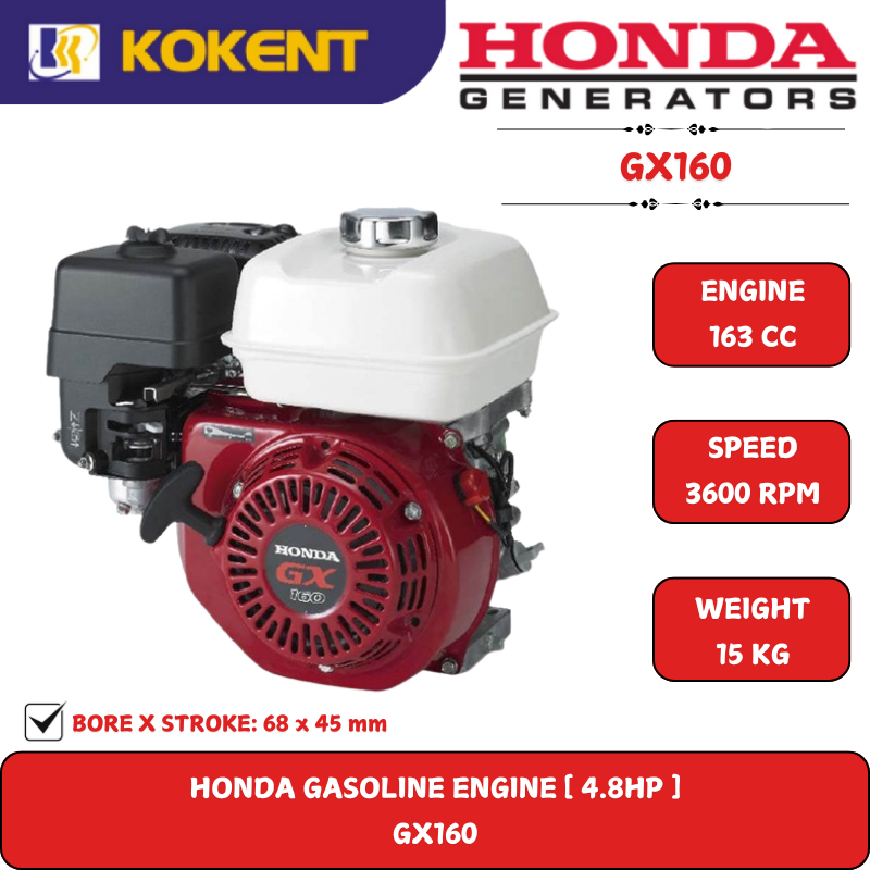 HONDA GASOLINE ENGINE [ 4.8HP.163CC.3600RPM.15KG ] GX160