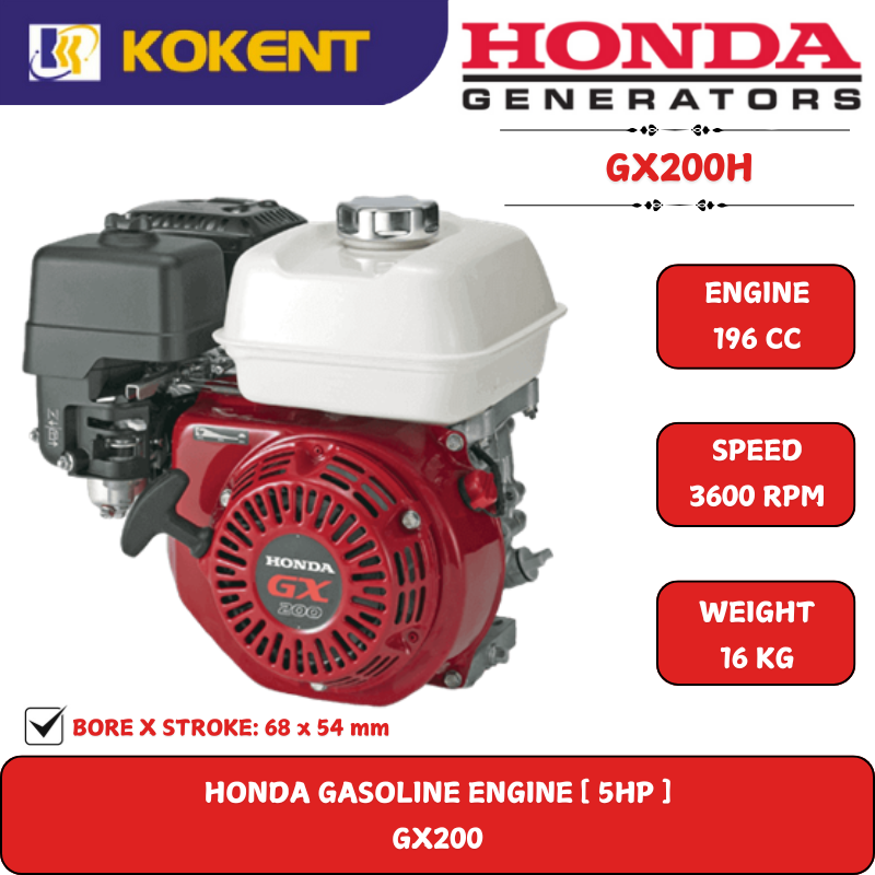 HONDA GASOLINE ENGINE [ 5HP.196CC.3600RPM.16KG ] GX200