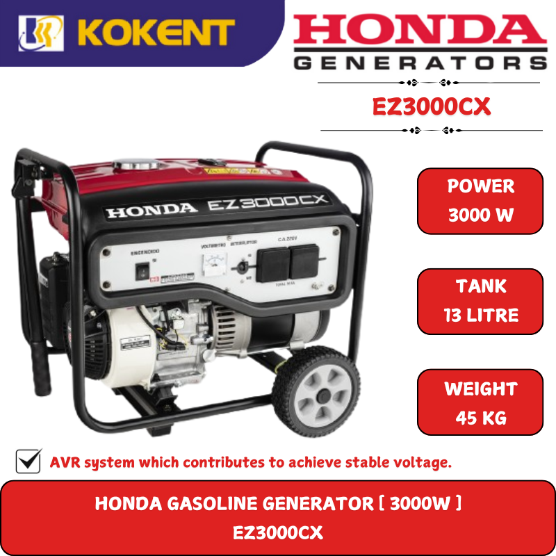 HONDA GASOLINE GENERATOR [ 3000W.15L/TANK.45KG.RECOIL START ] EZ3000CX