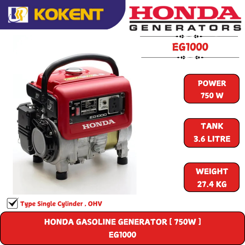 HONDA GASOLINE GENERATOR [ 750W.3.6L/TANL.27.4KG ] EG1000