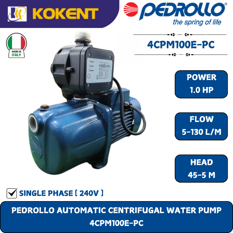 PEDROLLO AUTOMATIC CENTRIFUGAL WATER PUMP [1HP.5-130L/M.45-5 M] 4CPM100E-PC