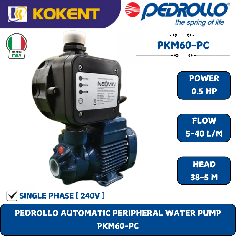 PEDROLLO AUTOMATIC PERIPHERAL WATER PUMP [0.5HP.5-40L/M.38-5M] PKM60PC