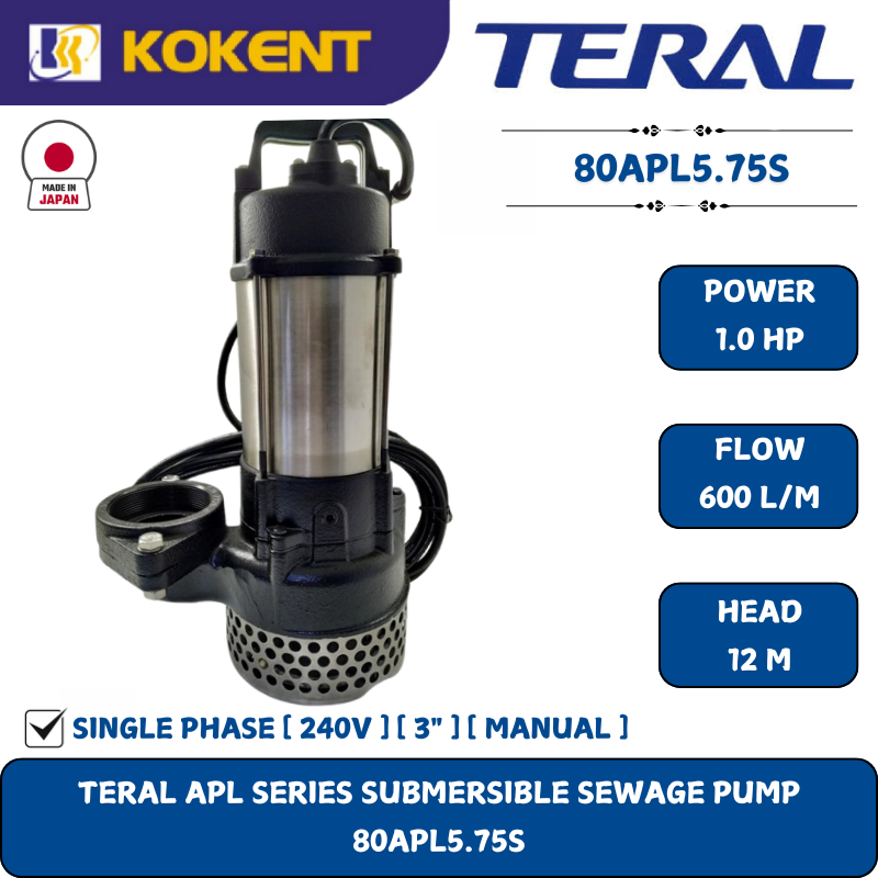 TERAL APL SERIES SUBMERSIBLE SEWAGE PUMP [1HP.600L/M.12M] 80APL5.75S
