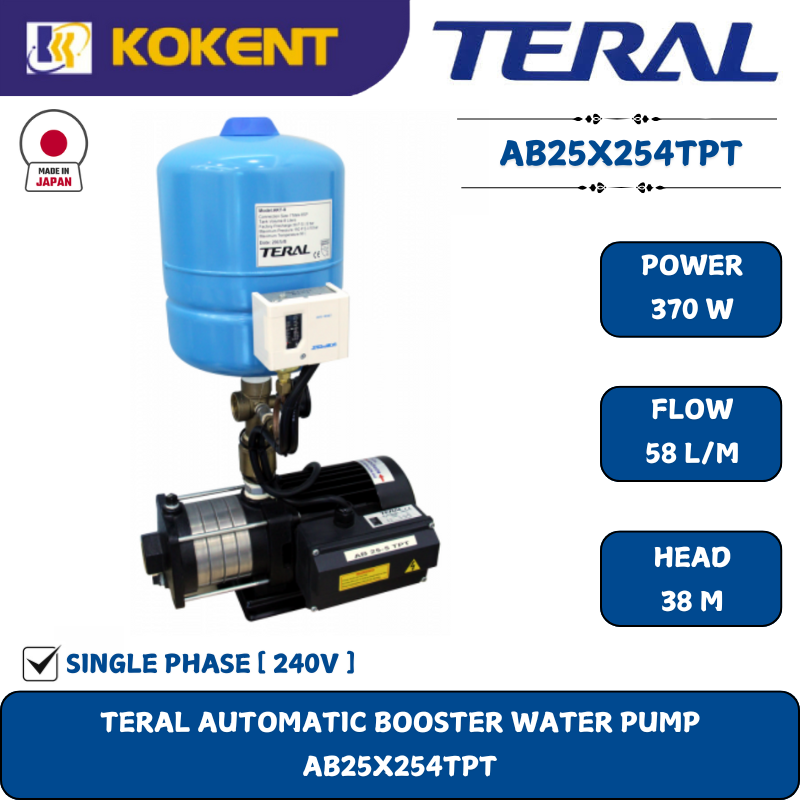 TERAL AUTOMATIC BOOSTER WATER PUMP [0.5HP.58L/M.38M] AB25X254TPT