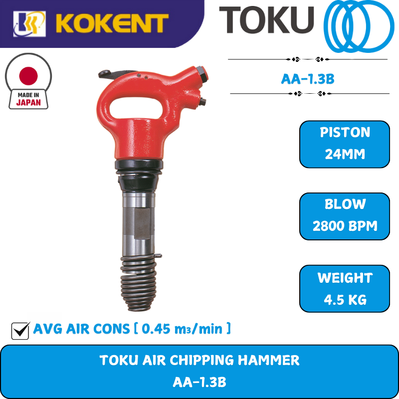 Toku AA1.3B (Made in Japan) is an air chipping hammer designed for general chiseling in construction worksites.