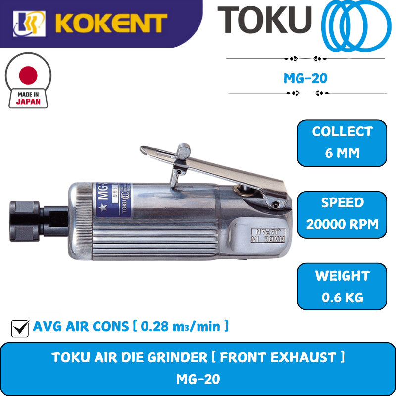 TOKU Air Die Grinder, Collet Size: 6mm, Max. Speed: 22000rpm, 0.6kg MG-20
