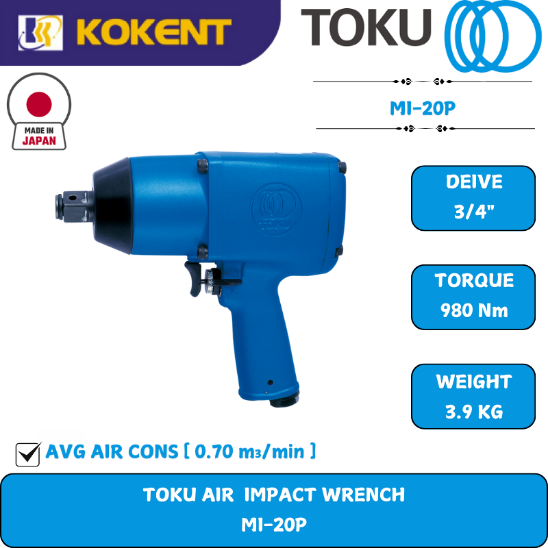 Toku MI20P (Made in Japan) is an air impact wrench with twin hammer clutch mechanism.