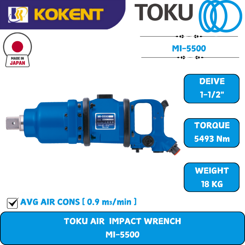 Toku Air Impact Wrench, Drive 1½”, Maximum Torque: 5492Nm, Speed: 3600rpm, 18kg MI-5500