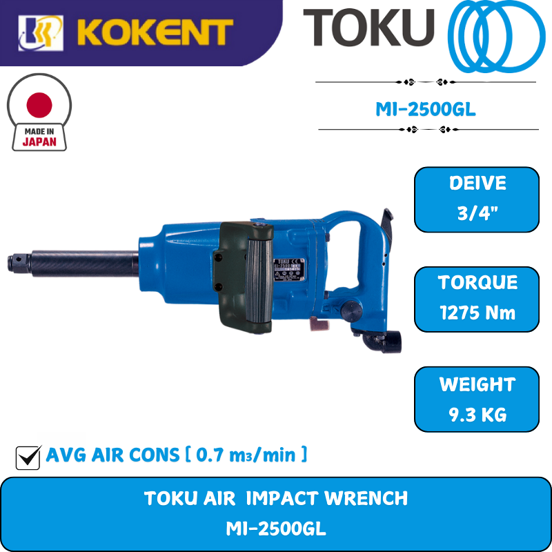 Toku Air Impact Wrench, Drive 3/4″, Maximum Torque: 1275Nm, Speed: 5300rpm, 8.2kg MI-2500GL