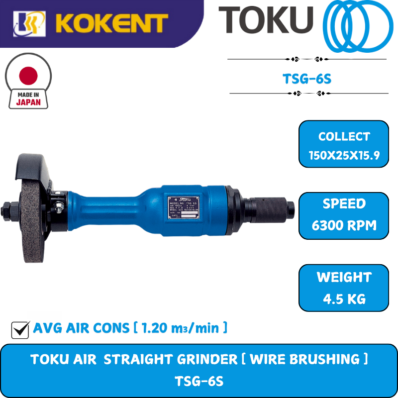 TOKU Air Straight Grinder, Wheel Size: 150mm, Max. Speed: 6000rpm, 4.2kg TSG-6S